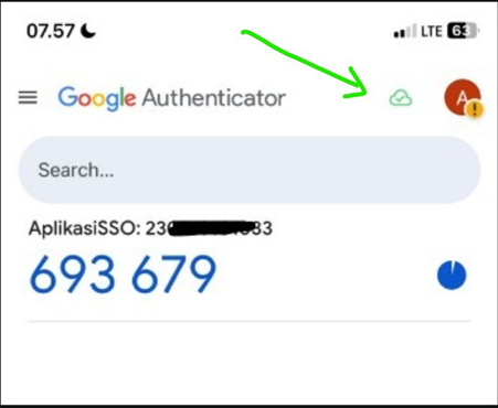 - Tutup dan buka kembali aplikasi Google Authenticator. Pastikan ikon awan sudah tidak dicoret merah.